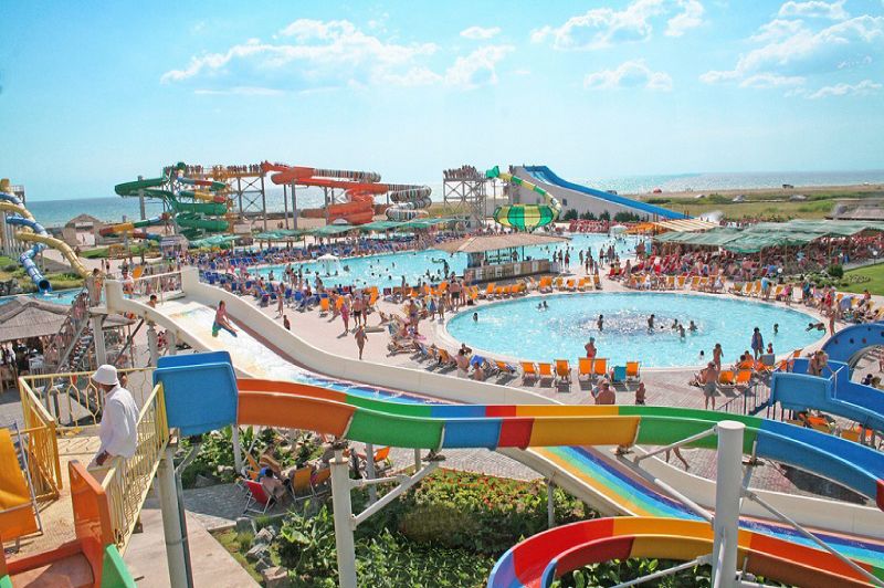 В аквапарке в Прибрежном расположено несколько бассейнов, в которые можно спуститься по горкам разного уровня сложности. Рядом расположены зоны отдыха, где можно полежать на удобных шезлонгах под тенью пляжных зонтов. Освежиться прохладительными напитками и мороженым Вам предложат в уютном кафе-баре. Также в аквапарке работает кафе и ресторан, где можно перекусить. А по вечерам здесь устраиваются шоу-программы, которые наполнят Ваш отдых яркими эмоциями.